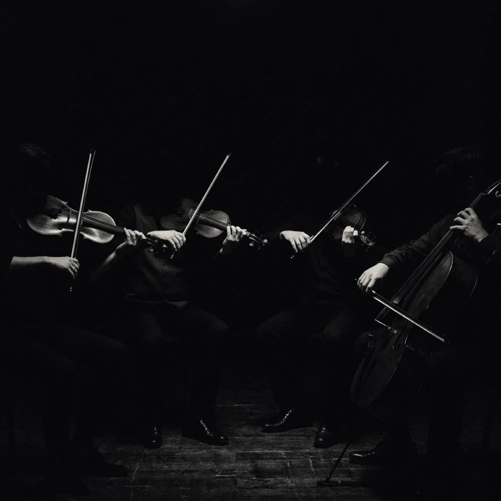 Black Angels on enemmän kuin konsertti. Kokonaisuuden keskiössä on uuden musiikin klassikko Black Angels (Thirteen Images from the Dark Land) vuodelta 1970, joka on sävelletty elektronisesti vahvistetulle jousikvartetille. Yhdysvaltalaisen avant garde -säveltäjän George Crumbin teos on sävelletty Vietnamin sodan aikaan kommenttina ja ajankuvana. Valitettavan ajankohtainen teos saa uuden kontekstin Gazan sodasta ja kuljettaa kuulijansa taistelukentille ja pohtimaan sodan kokemusta. Teoksessa on kuultavissa viittauksia klassisen musiikin merkkiteoksiin yhtälailla kuin sodan moderneihin välineisiinkin.